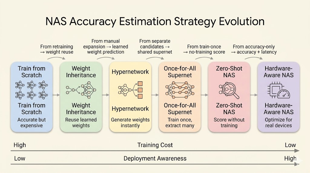 The expensive part of NAS is not sampling architectures. It is evaluating them. A naive NAS loop trains thousands of candidates, and each full training run can be costly.