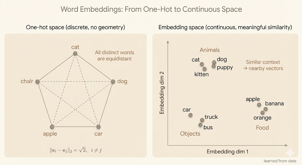 Unlike n-gram models, neural language models learn distributed representations that capture similarities between tokens. As a result, semantically related words such as “cat” and “dog” are mapped to nearby representations, allowing training examples involving one word to improve predictions involving the other.