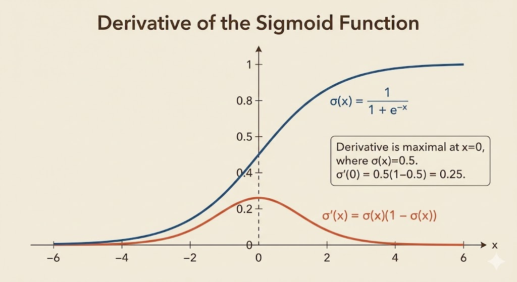 For a sigmoid \(g(x)=\frac{1}{1+e^{-x}}\), as \(|x|\) grows, \(g'(x)\to 0\). If the pre-activation \(x=Wu+b\) drifts, gradients to \(u\) shrink and learning slows.
