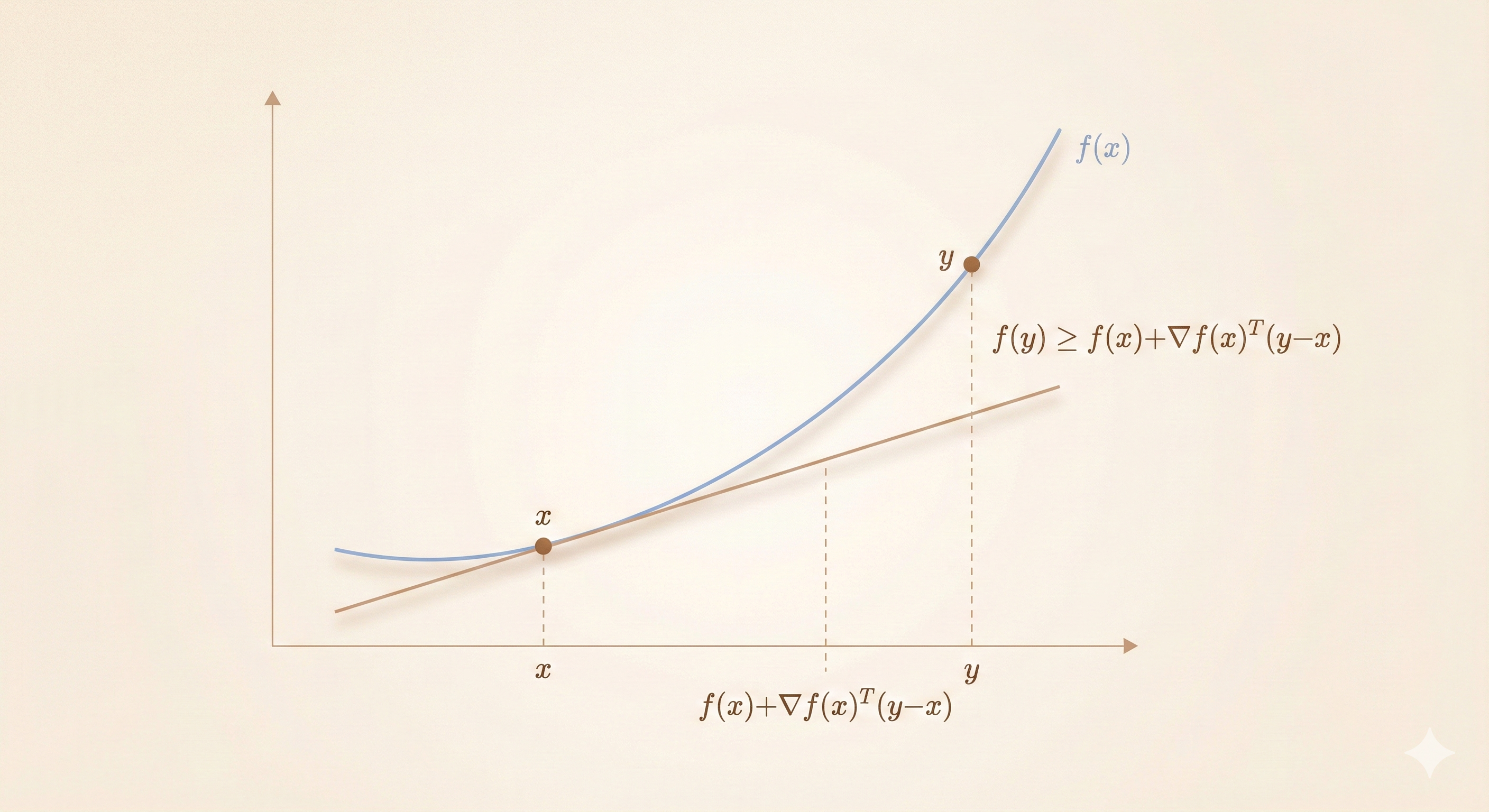 Key insight: For a convex function, the tangent (first-order linear approximation) always underestimates the function.