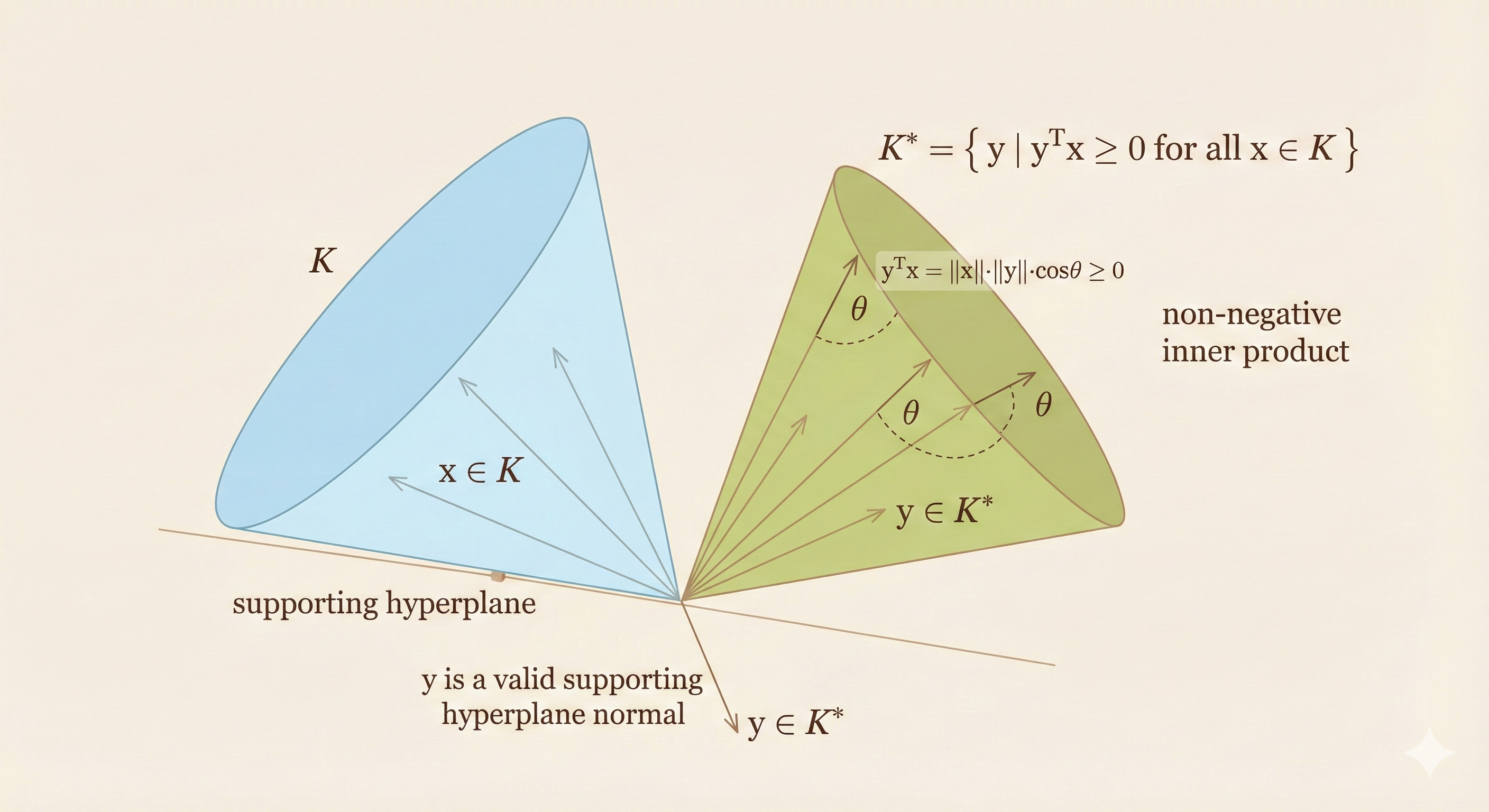 - \(K = \{0\}\): the dual cone is \(K^* = \mathbb{R}^n\)