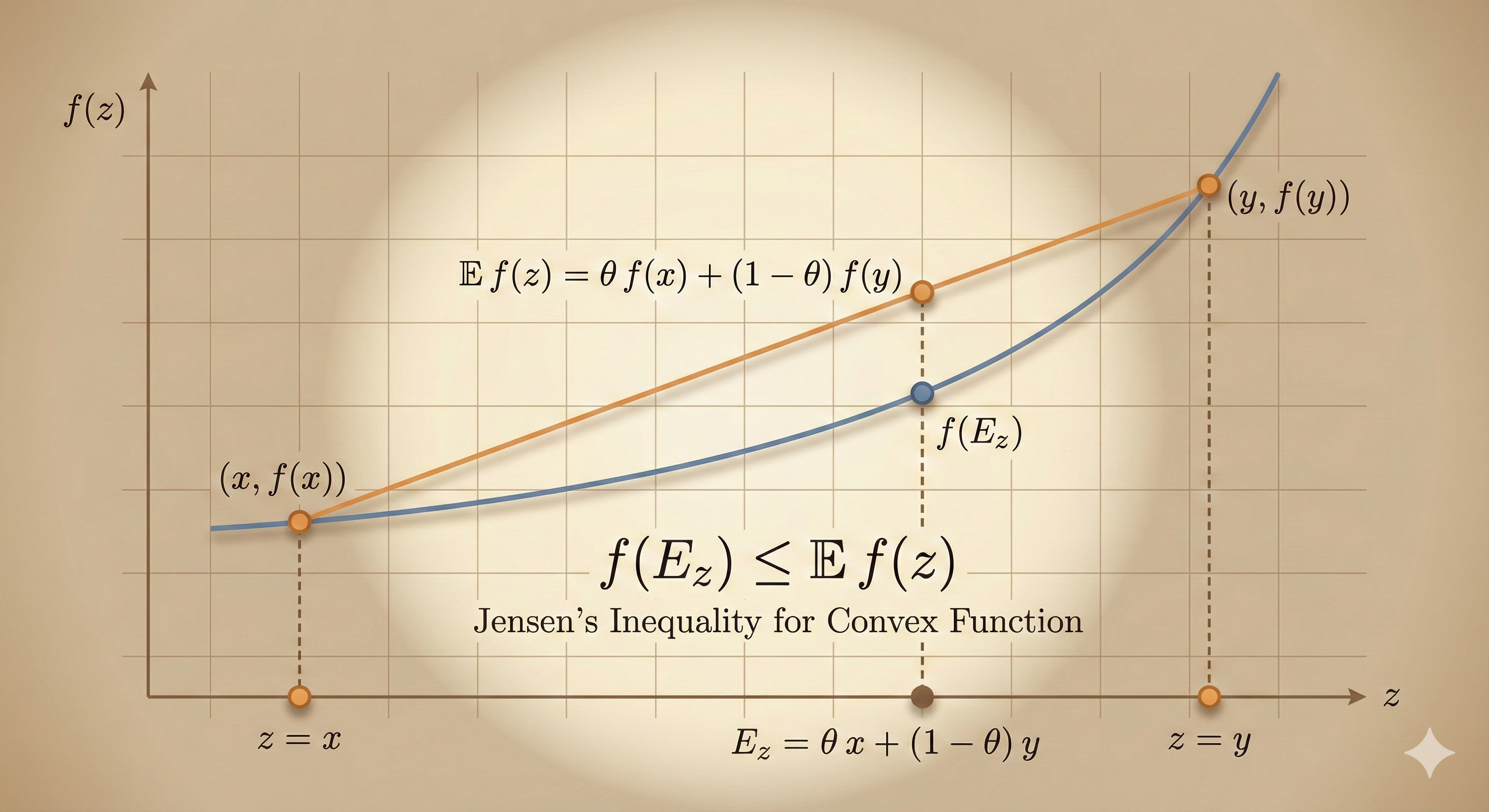 \[ f(\mathbb{E}[z]) \leq \mathbb{E}[f(z)] \]
