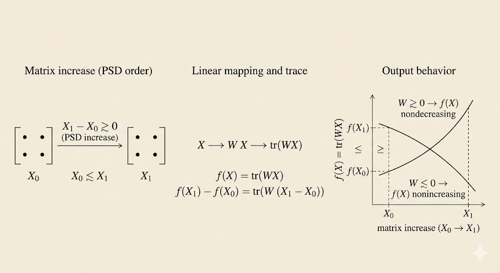 - \(\mathrm{tr}(X^{-1})\) is matrix decreasing on \(S_{++}^n\)