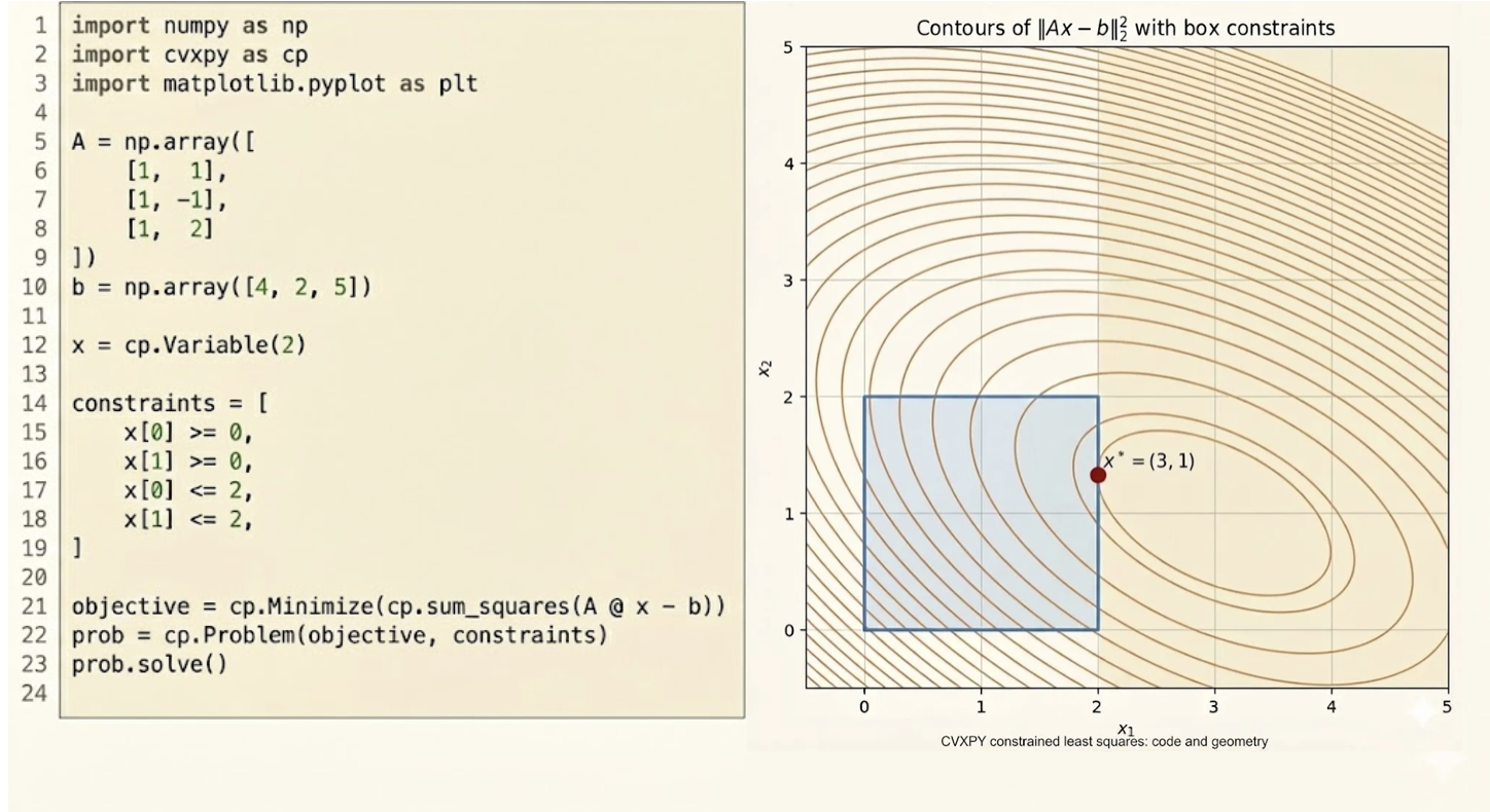 - Decision variable: \(x \in \mathbb{R}^n\) — the variable we optimize over