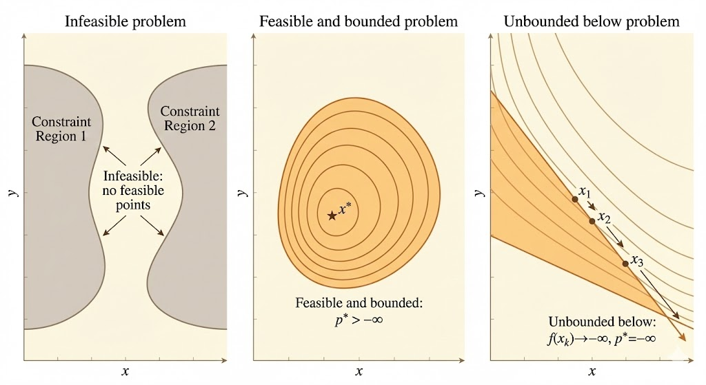 - If the problem is infeasible, \(p^* = +\infty\) (by convention)