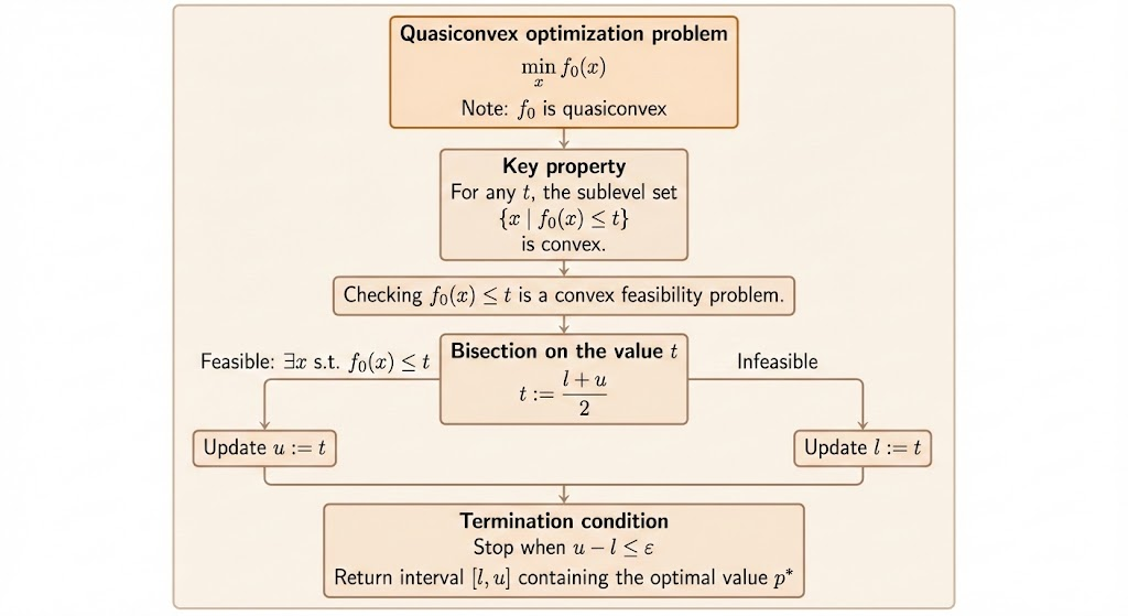 - Quasiconvex problems retain tractability via bisection on sublevel-set feasibility.