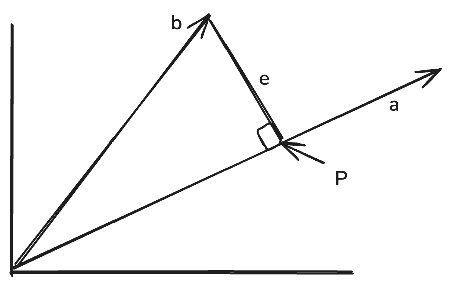 - \(e \perp a\) (error is perpendicular to \(a\))