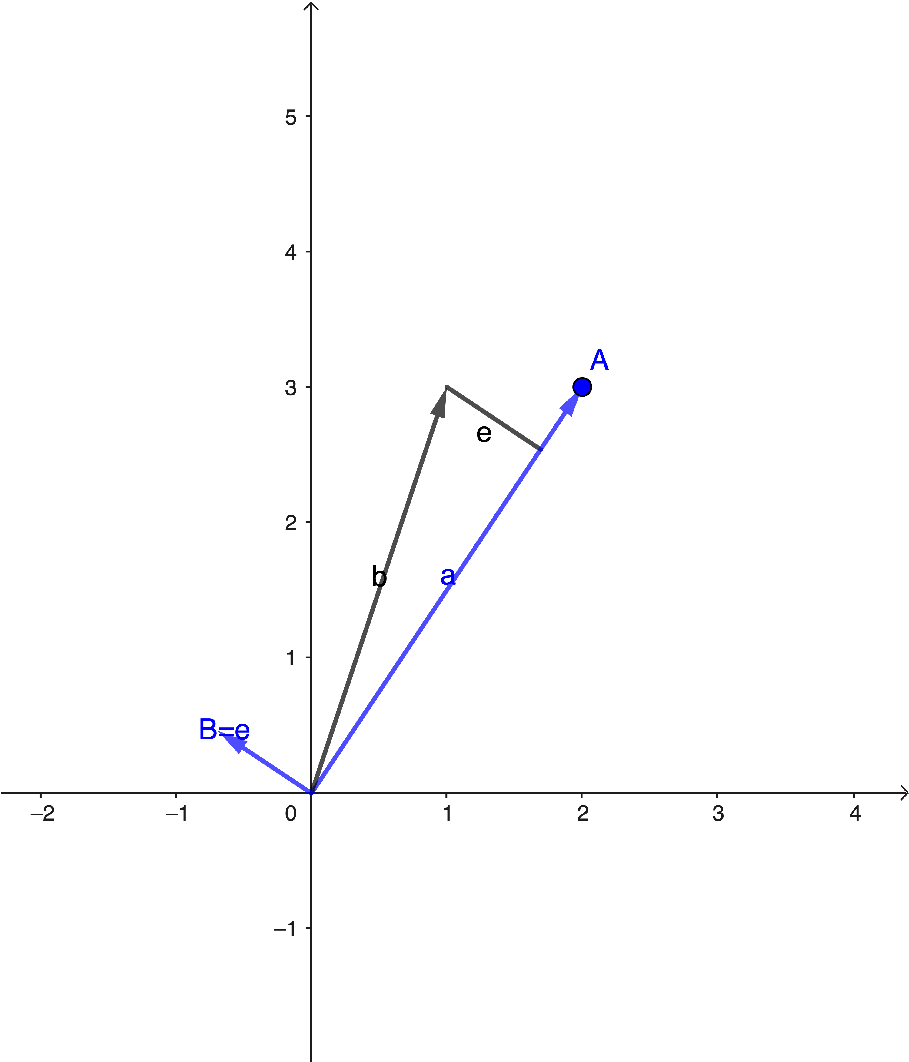 We then remove the projection of \(b\) onto \(a\) from \(b\), using the error component as \(B\).
