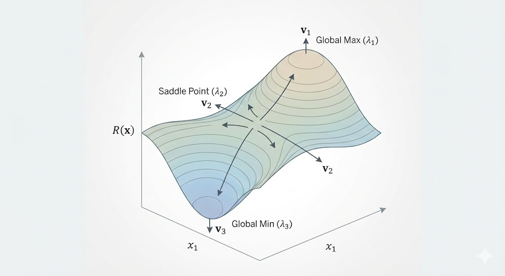 - Maximum at \(x=q_1\): \(R(x)=\lambda_1\).