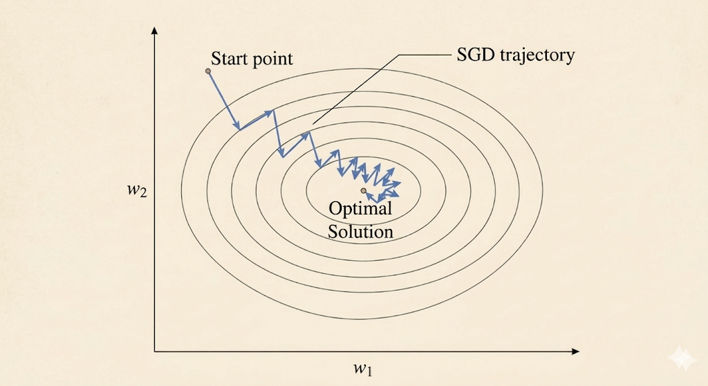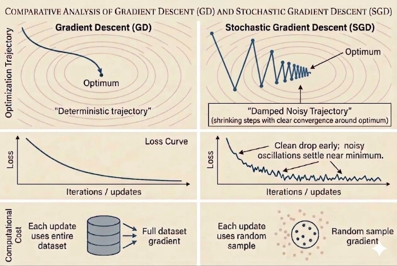 Each update is roughly \(n\) times cheaper, which is why SGD scales to massive datasets.