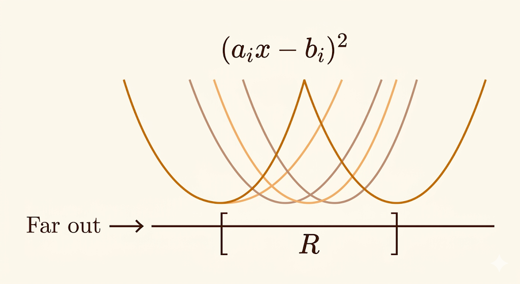 \[ f_i(x)=(a_i x-b_i)^2. \]