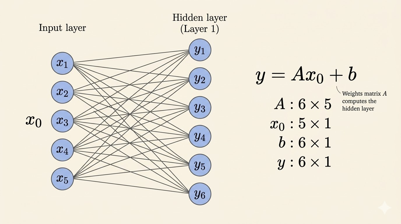 - the bias vector is \(b_1 \in \mathbb{R}^m\)