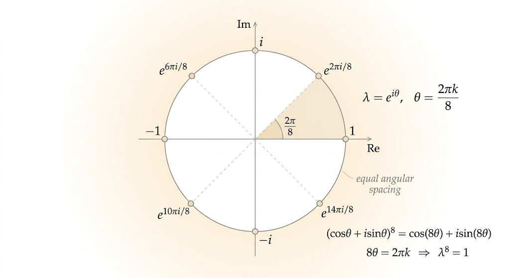 so the eigenvalues are the eight roots of unity: